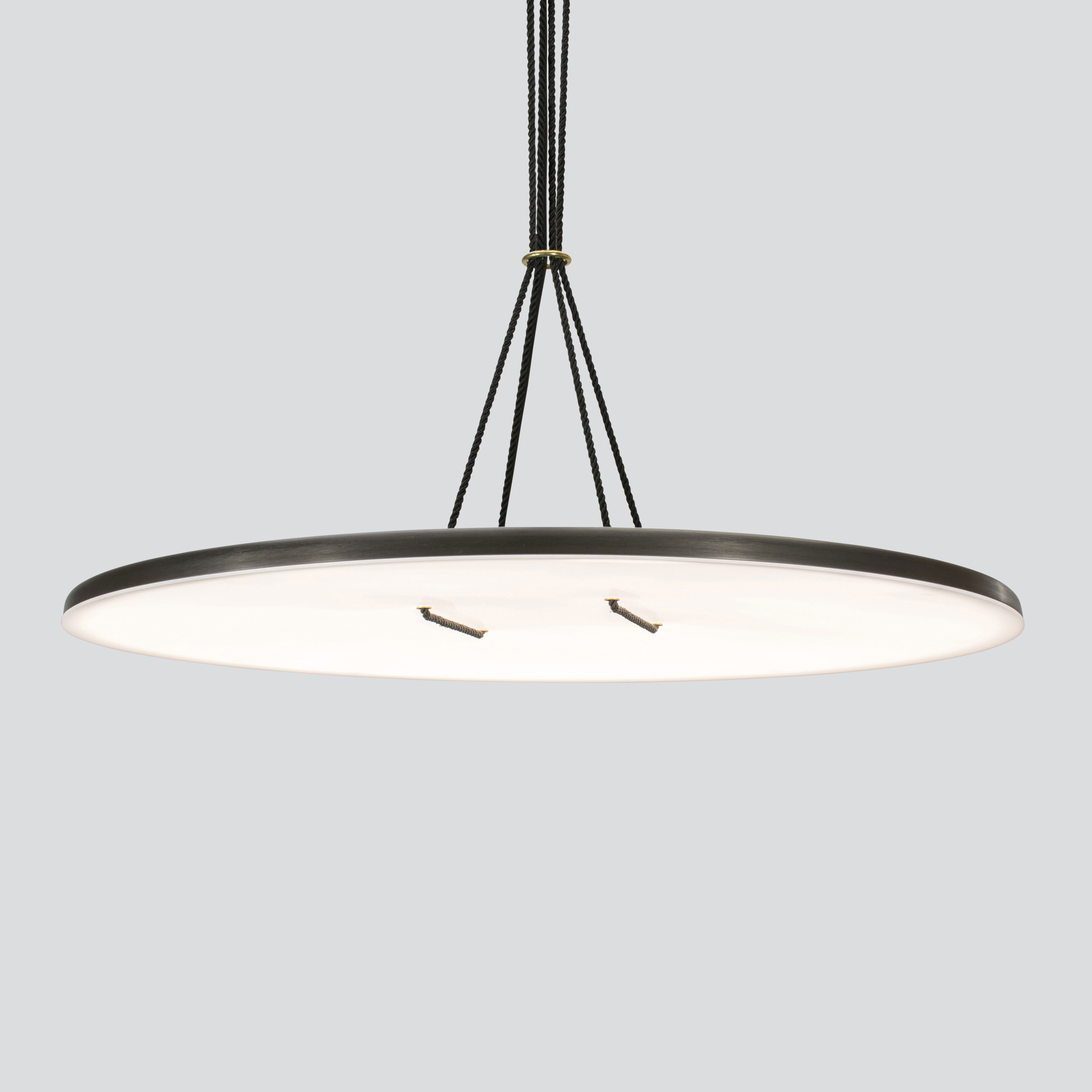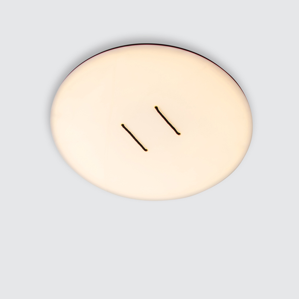 Mimicking a giant button, the broad-faced acrylic diffuser and thin-profiled fixture is memorable and playful as it invites its user to tilt the fixture to project light in the desired direction.