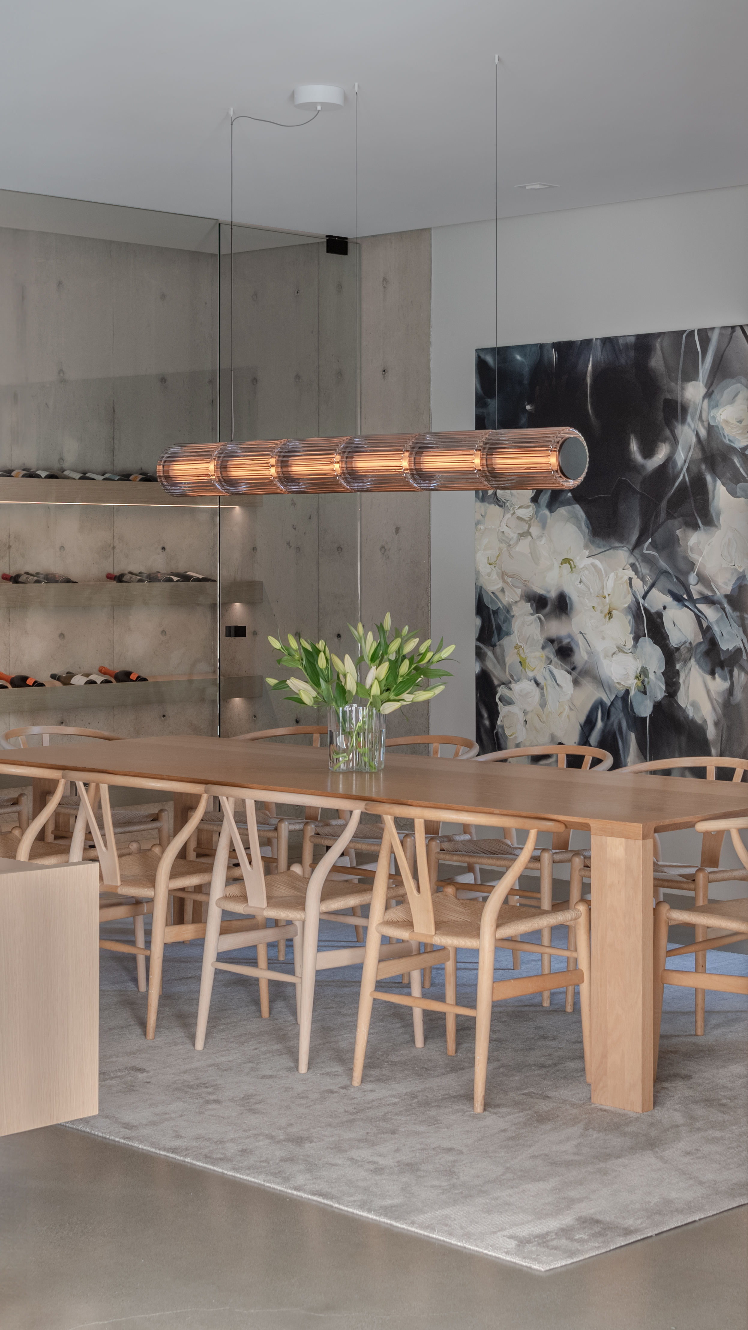 The Column conveys order, symmetry and magnificence, much like the Grecian doric columns found in classical architecture. The faceted surface of the fixture alludes to the fluting of columns on buildings and temples to create a sense of rhythm, which softly diffuses the light as it radiates into the space. As it can be arranged in segments of machine mould-blown glass cylinders, it can lengthen a space vertically or expand it horizontally.