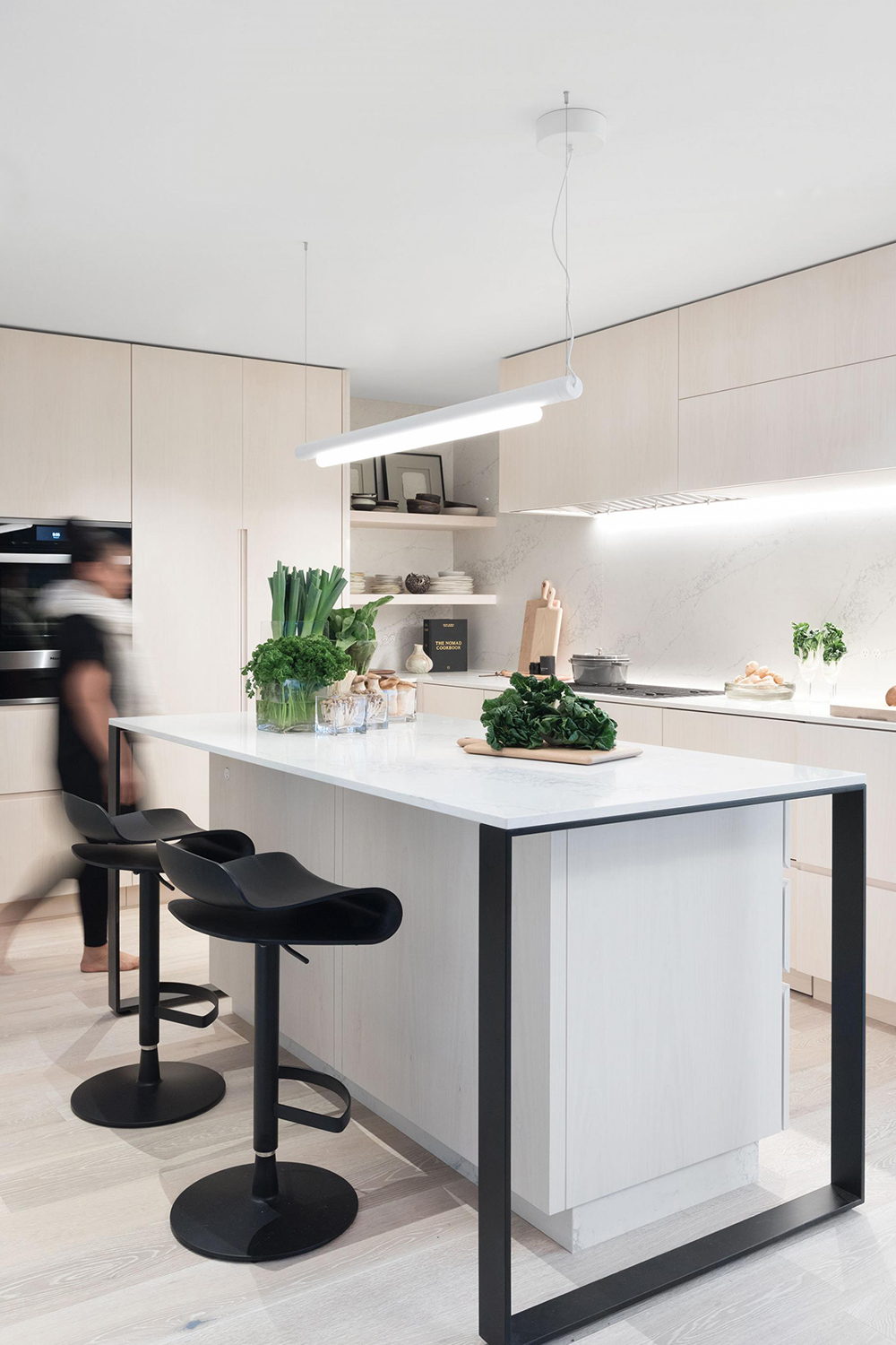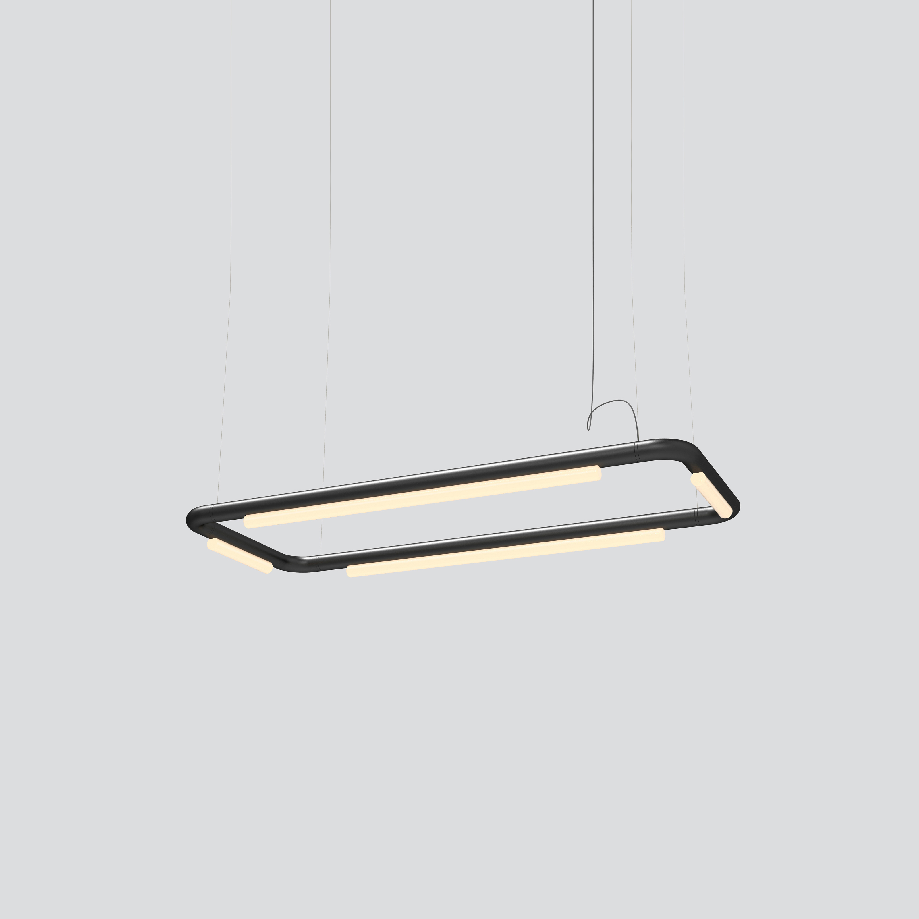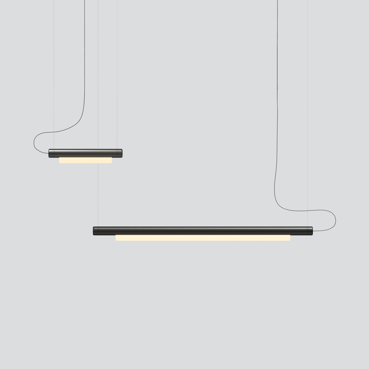 Stark, elegant, and resolute, The Pipeline 40 pendant lamp suspends horizontally from 1mm thin aircraft cables, creating the illusion of floating in air. A wide horizontal beam of light is emitted through a diffuser designed to soften the LED light while maximizing output.