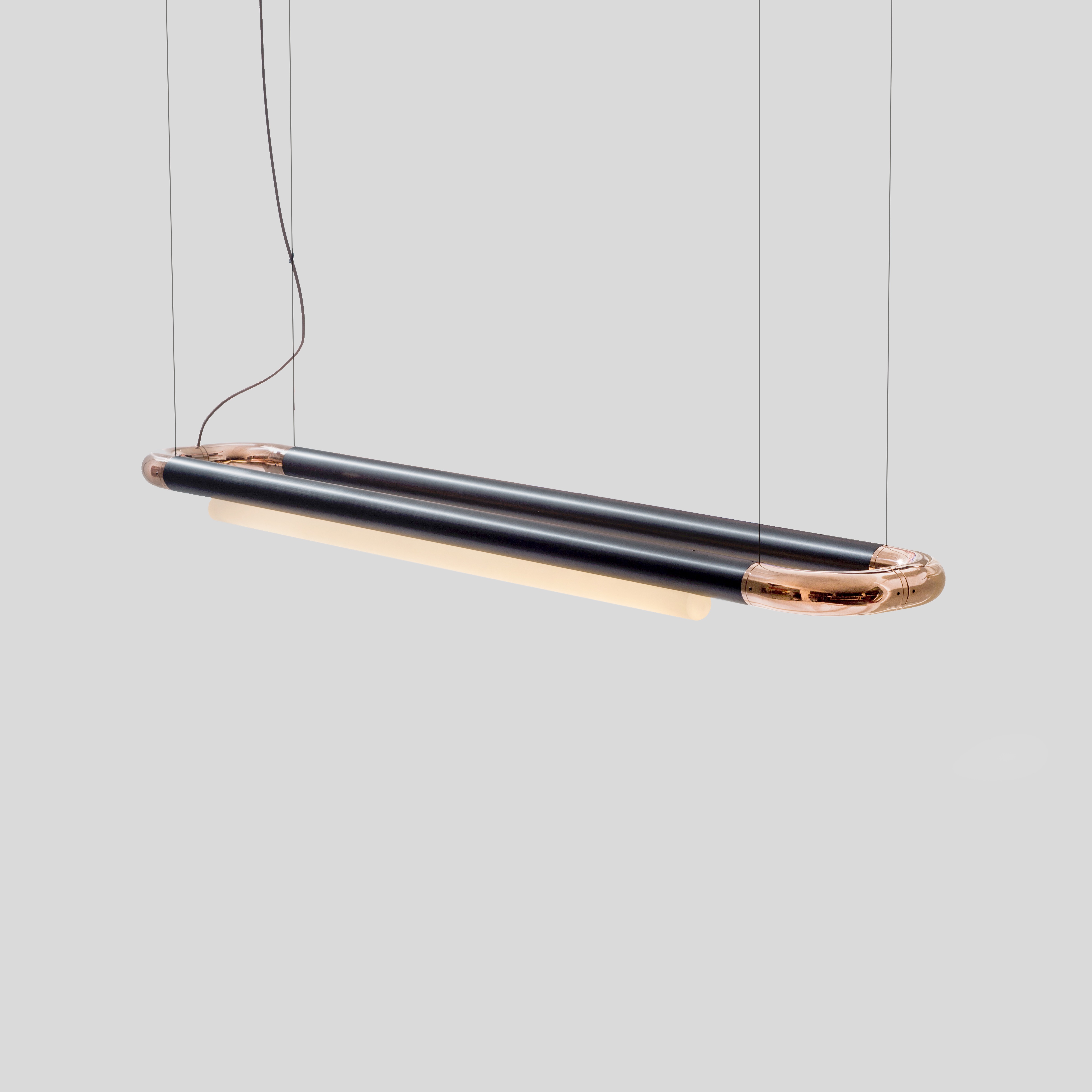 The series applies the modular capability of the Pipeline series by using a kit of parts to create unique configurations such as ‘S’ curves, loops, and larger angular arrangements for functional and decorative applications.