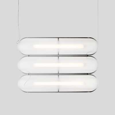 The thermo-formed curvilinear profile of the Vale Floor Lamp is accentuated while it stands on a polished weighted mirror base with either one or two module(s) stacked vertically. As light is transmitted through a prismatic diffuser, the lamp's brightness can be adjusted by a dimmer to the desire of its user.